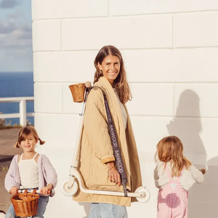 This Banwood Carry Strap could be easily used in combination with balance bikes and scooters. Made of durable dacron. Embellished Banwood Logo. Vegan leather details. Available in four different colors.
